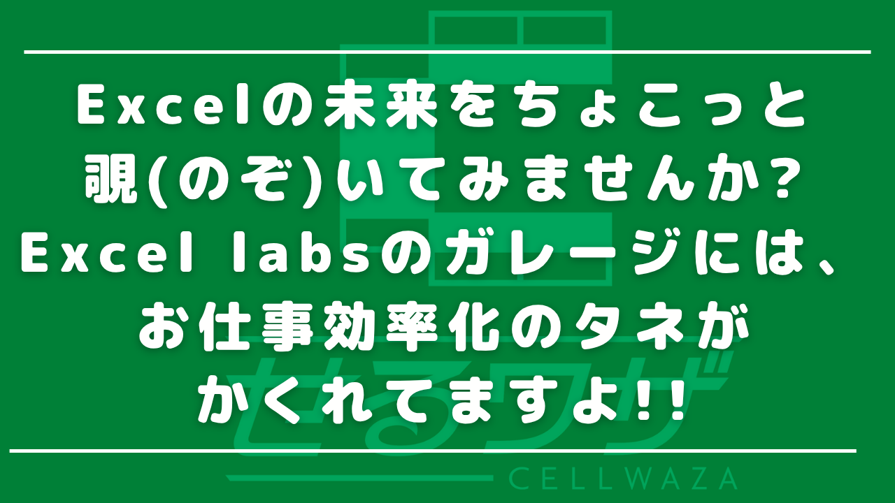 Excel labsは、Microsoft社が正式リリースする前の便利機能を、いち早く試用できる”夢のガレージ!?”