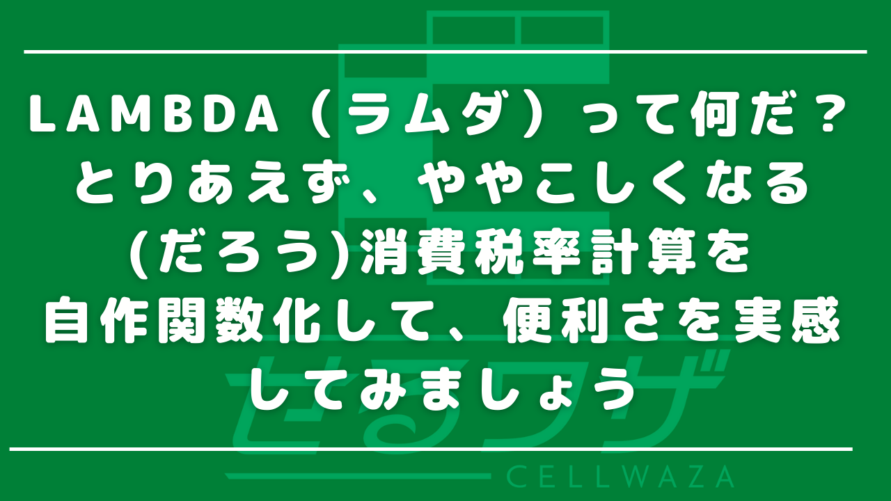 今回は、ややこしくて奥深いLAMBDA関数の”入り口”について、ごくシンプルに、これまたややこしくなりそうな消費税率計算の事例をサンプルとして、解説します。