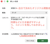 LAMBDA関数と名前の定義をセットで使うと、自分の好きな名前でExcelブック内独自関数が作れます
