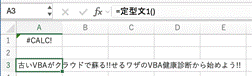 ただ、セル上に文字列だけのLAMBDA関数を入力しても #CALC! エラーが出ます(計算すべき引数部分で、何も計算されていない関数式ですからね)。