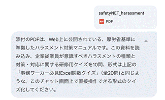 問題集ではなく、たとえば危機管理マニュアルなどにもとづいて、設問をAIに依頼するとどうなるでしょうか?