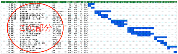 ガントチャートで表現するプロジェクトが進展し、関係者が増えて構造が複雑になるほど、シートも肥大化してしまい、最終的には「誰も触りたくない、怖〜いExcelファイル」の出来上がりです。