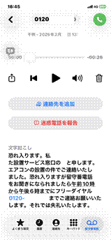 iPhoneの場合は、受電設定で、「不明な発信者の場合には着信音を鳴らさず、自動的に留守電録音を開始。留守録音声は自動文字起こしされる」設定が可能です。
