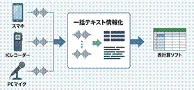 その音源が自動でテキスト化されて、カンタンに表計算ワークシート形式に変換できるのです!!