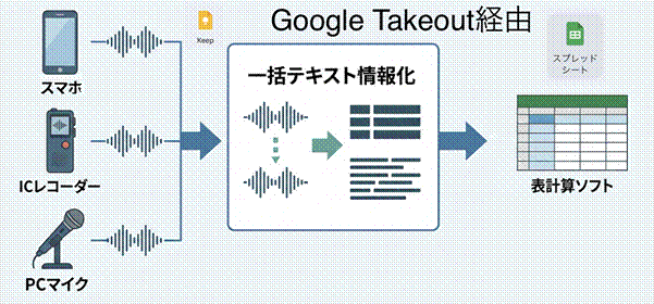 スマホ・マイクの音声認識能力はかなり正確!テキスト化されたメモは、Google Takeoutが表計算ソフト用に変換してくれます