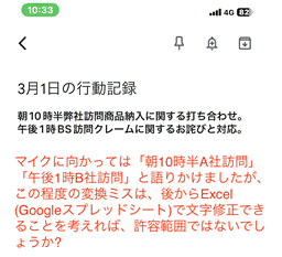 ・パソコンを開けない出先で音声入力した調査報告内容をExcelへ保存。