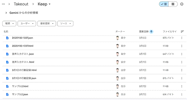 これは、メモアプリであるGoogle Keepや、表計算ソフトであるGoogleスプレッドシートの特質ではなく、Google社が一般提供しているオフィスソフト(Google Workspace)用のデータ・エクスポーターであるGoogle Takeoutの機能に拠っています。