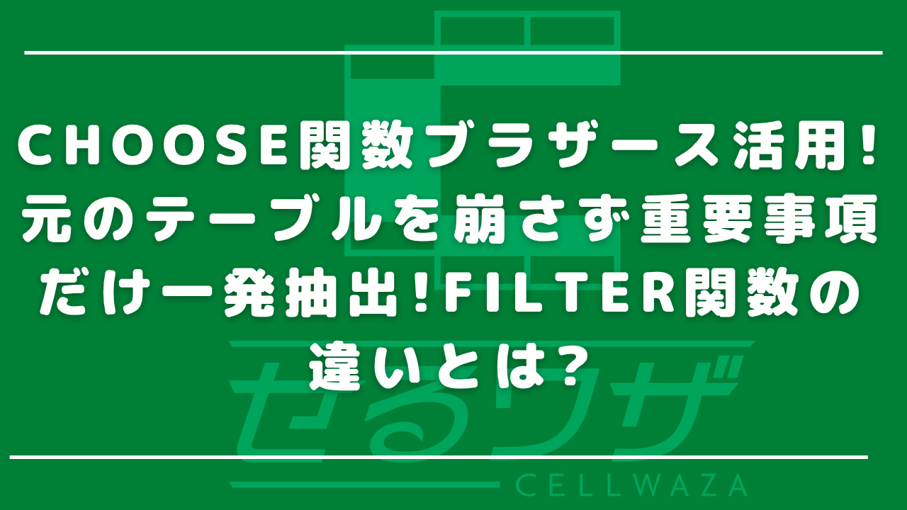 特に、会議資料や共有用レポートのように、全情報から限られた部分だけを見やすく整えたい場面では、「条件抽出」よりもCHOOSEブラザースによる「部分選択」の方が、目的の成果物をカンタンに手に入れられるようになりますよ。