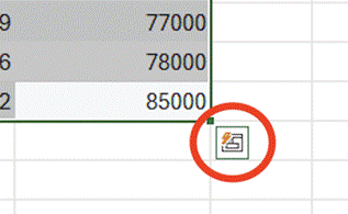 セル範囲を選択するとアイコンが表示され、このアイコンをクリックするだけで、分析や見せ方の候補が、一覧で表示されます。